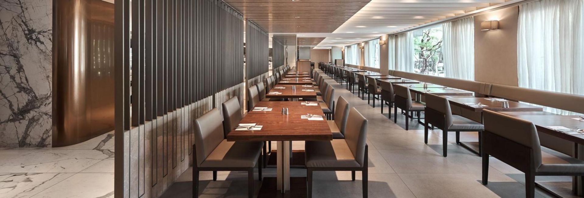 Le Café咖啡廳以自然生態圈為設計理念為主軸進行餐台改裝,融合海洋、綠林與豐富的水岸生態呈現海岸與山脈的色調跟質感,搭配牆面岩板質感的牆磚與造型加熱燈,營造用餐氛圍,整排的落地窗,可一覽綠意的楓香大道及享受溫暖和煦的陽光,華麗的大理石搭配典雅的香檳色系傢俱,結合東西美學元素的細膩質感,為難得一見的時尚與品味兼具的餐廳。主廚精心準備中西日式佳餚,新增蒸籠區提供精緻港點滿足饕客的胃,豐盛的百匯料理等您來品嚐。