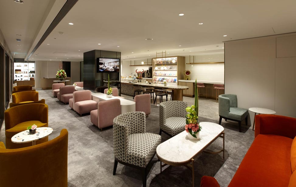 開放空間感設計,讓旅客得以悠閒放鬆,愜意享用咖啡、茶水、軟性飲料與酒精性飲品,搭配新鮮水果與小餅乾。另提供會議設備租借(付費)、免費無線上網及各類書報雜誌與旅遊資訊,滿足旅客多元需求。