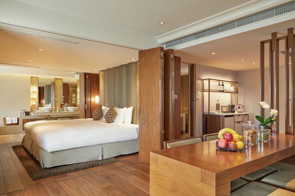 セイフティボックス、TIGER 電気ケトル、Harman Kardon Bluetooth スピーカー、NANOE 空気清浄除湿機、DVD プレイヤー、マイナスイオンヘアドライヤー、室内用スリッパ、天然素材の贅沢なロクシタンのボトル入りトイレタリー、セパレート・バス、ウォッシュレット、ジャグジー付きバスタブ、ドライサウナ、バスソルト、パジャマ、バスローブ、シューズドライヤー、Nespresso コーヒーメーカー、ミニバー